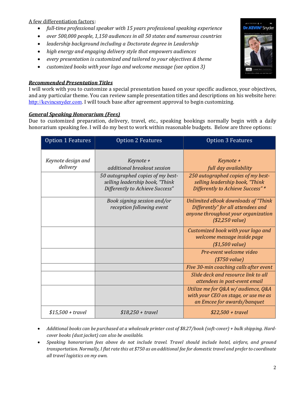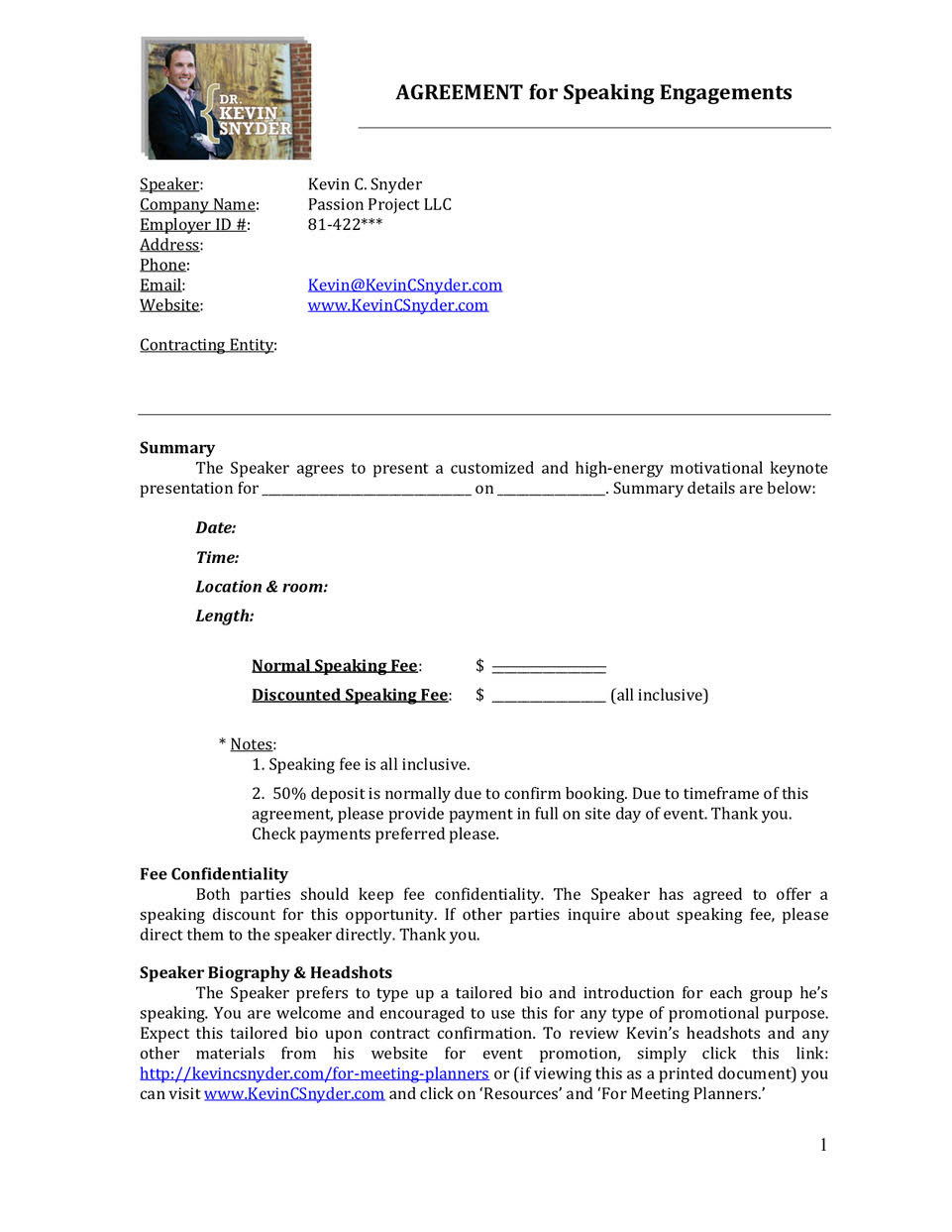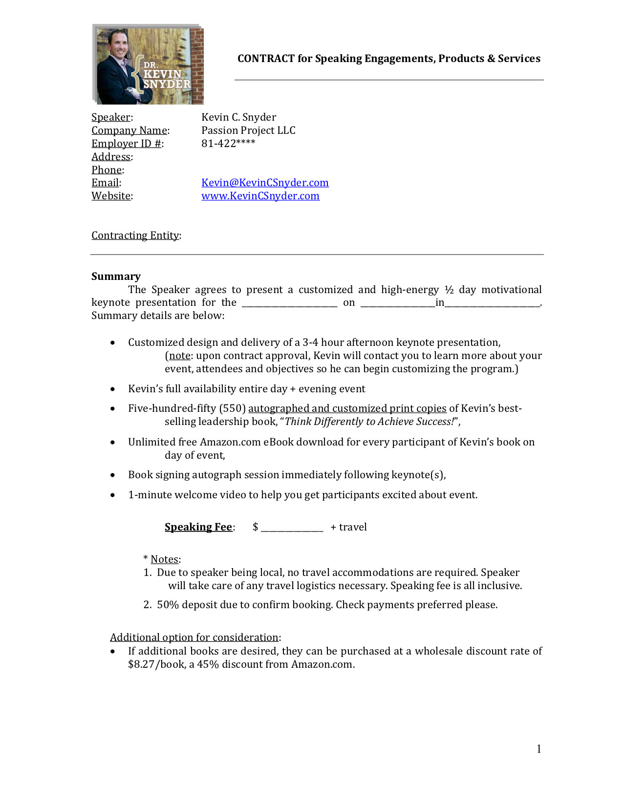 Marketing “One Pages” (i.e. speaker marketing flier)